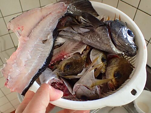 先日、イサキを釣りに行きまして(こちらの記事)、大量にイサキの頭、およびその他魚のアラが手元にある訳ですよ。 で、せっかくだからとこれで魚骨ラーメンを作ってみました。 まず魚のアラをよーく洗って、昆布と一緒に水から鍋で煮ます。 沸騰したらアク…