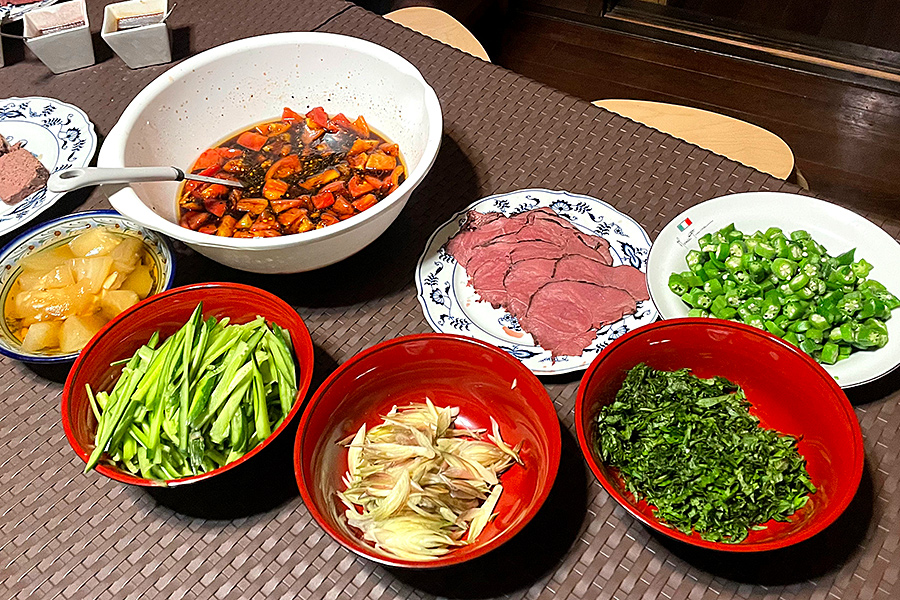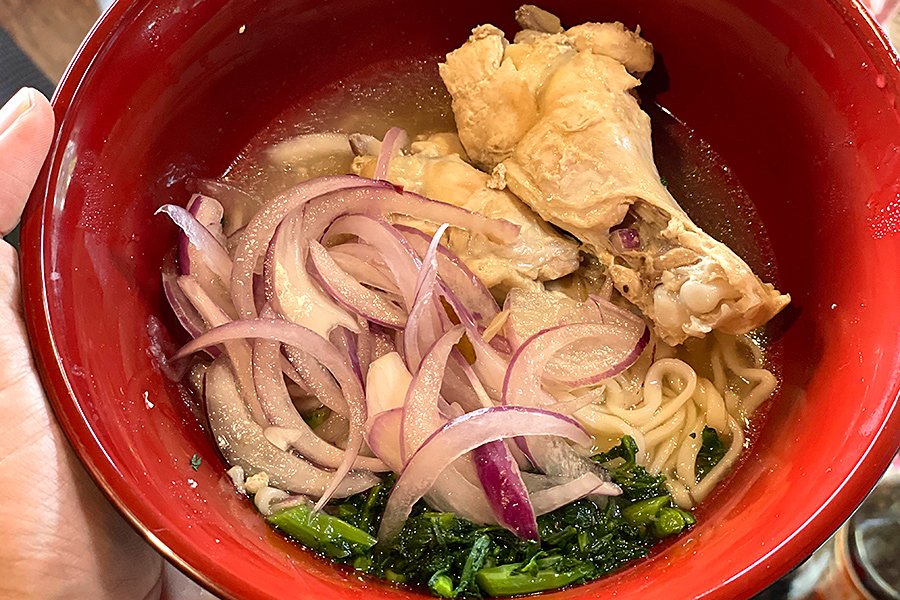 夕方まで製麺をしたら、温泉などに寄っていただき、「のらのら」という古民家に移動して、自家製麺による夕飯をいただきます。