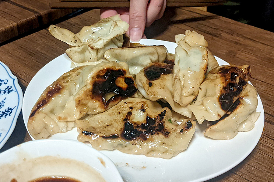 そして皆さんに手分けして作っていただいたのが製麺機で皮を伸ばした手作り餃子。さらに参加者の猟師ひろしが持参してくれたジビエ料理など。全部うまい。