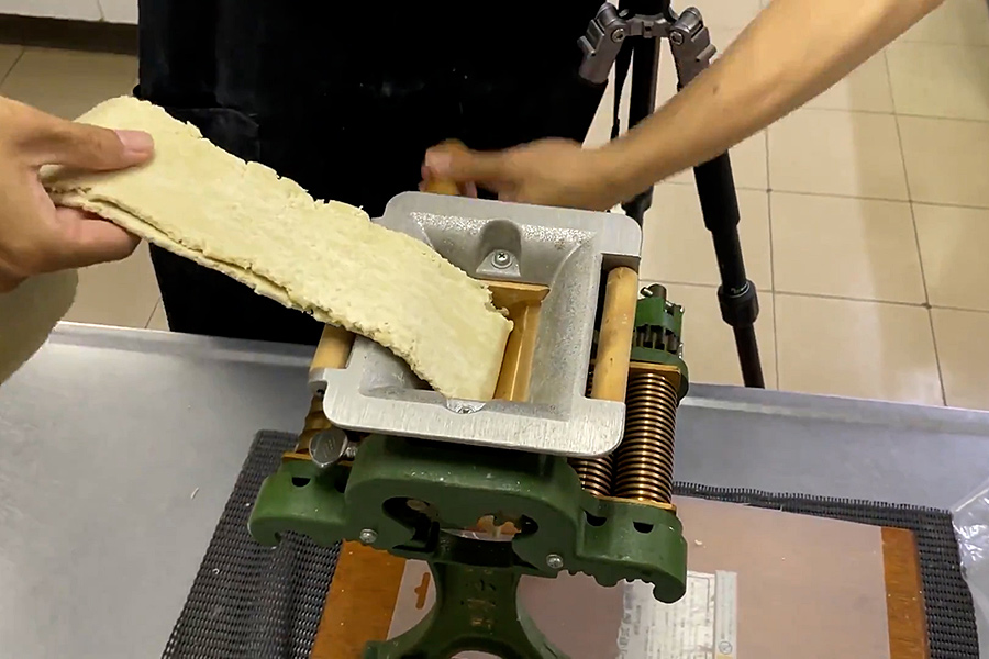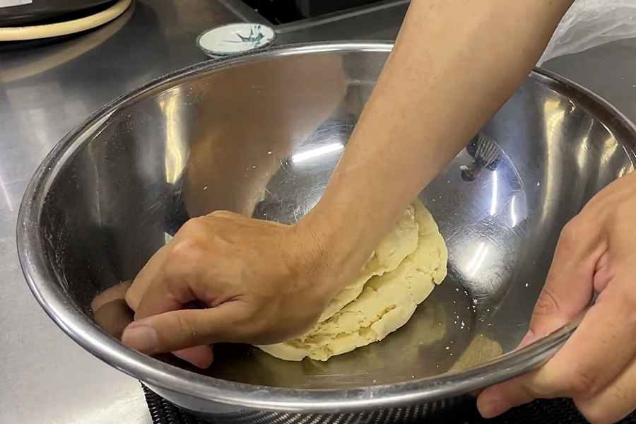 強力粉を使った中華麺用の硬い生地も製麺します。こっちがメインです。